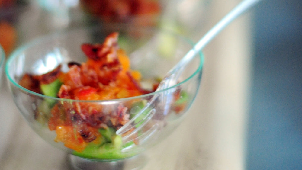 AVOCAT À LA SAUCE PIQUANTE ET BACON CROUSTILLANT