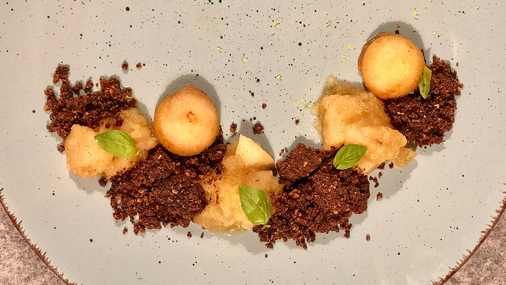 CRUMBLE DE SARRASIN, POMME-POIRE À LA CANNELLE ET VANILLE