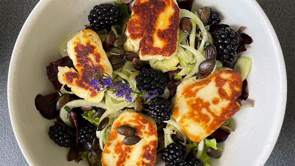 SALADE DE FENOUIL, HALLOUMI ET MÛRES