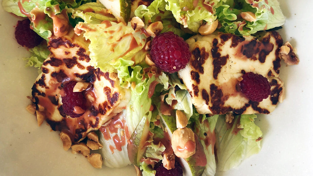 SALADE DE HALLOUMI À LA VINAIGRETTE DE FRAMBOISE