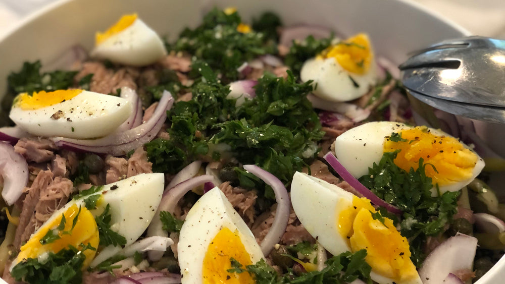 - 2 | Mélanger tous les ingrédients de la vinaigrette dans un petit bol et verser sur la salade.