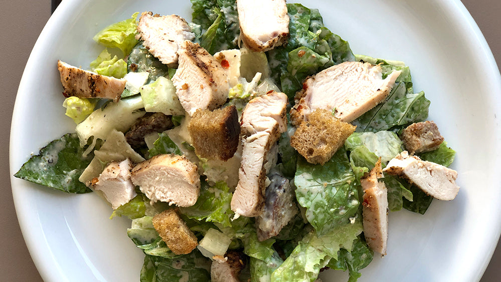 | Servir avec de la laitue romaine, des croutons, du Parmesan et des blancs de poulet grillés (ou de crevettes).