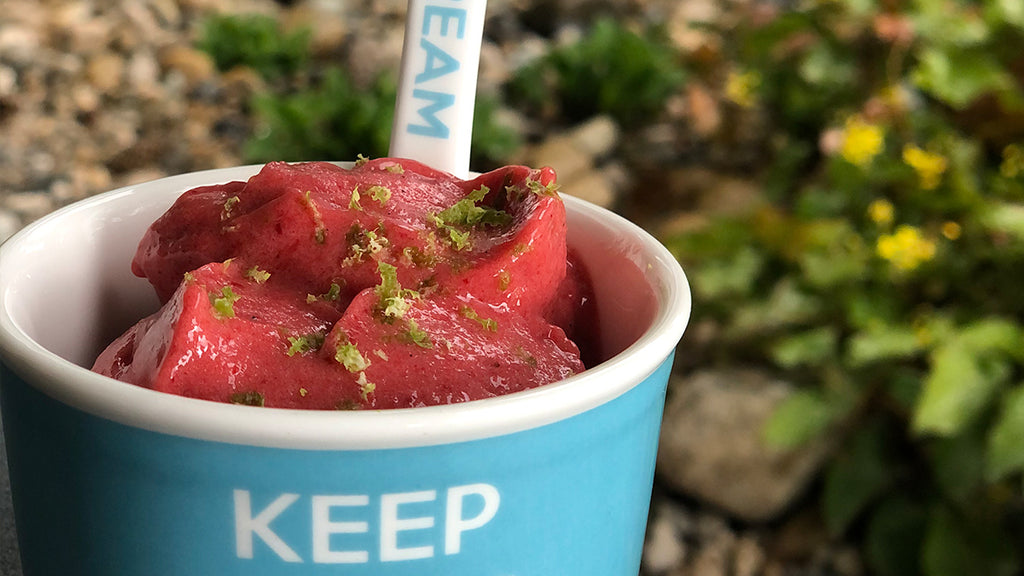 > Vous pouvez utiliser n'importe quel autre fruit congelé avec les bananes, comme la mangue, les myrtilles, les abricots, les framboises...