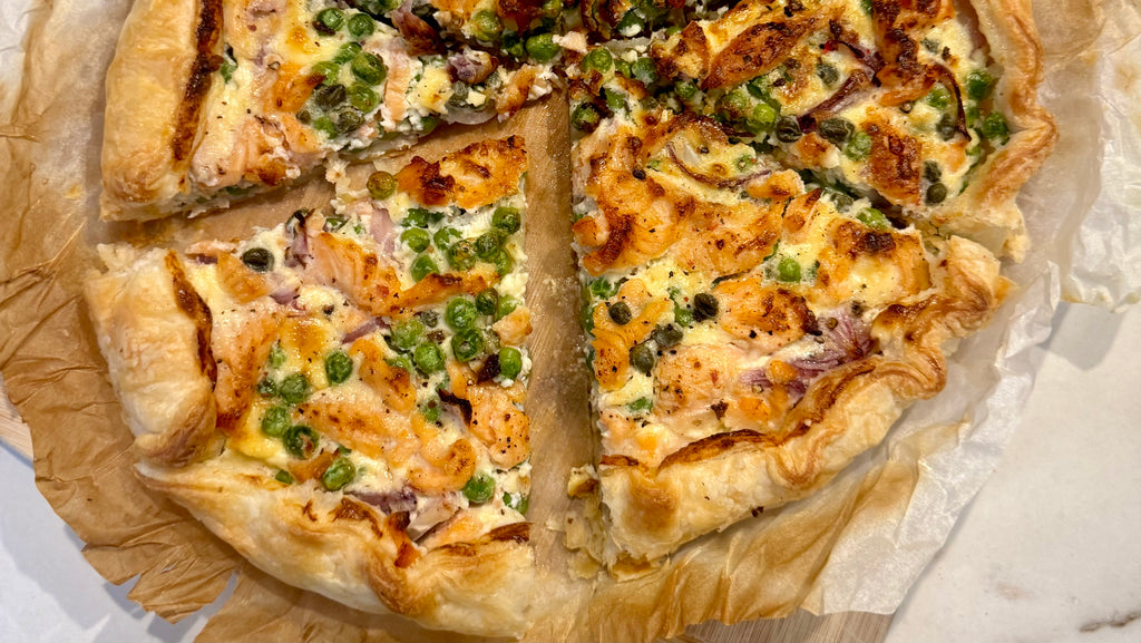 TARTE AU SAUMON, PETIT POIS ET RAIFORT