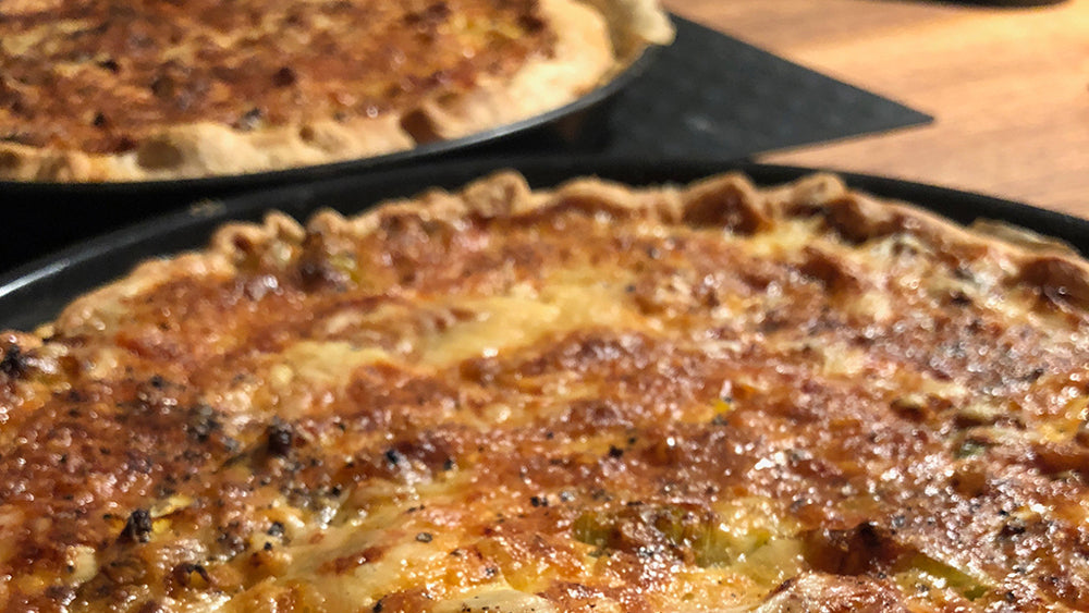 | Mélanger la demi-crème avec les oeufs et les 2 fromages râpés pour préparer l’appareil à quiche.