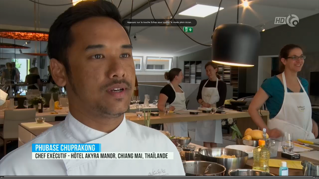 Le chef thaï Phubase Chuprakong, de l’Hôtel Akyra Manor de Chiang Mai, donnait récemment un cours à l’école de cuisine « Les Laboratoires Culinaires » de Cortaillod. Au menu: apprivoiser les saveurs du Nord de la Thaïlande. Pour un premier séjour en Europe, le chef n’a pas eu à faire de gros efforts d’adaptation, car il partage avec l’école de cuisine neuchâteloise la vocation de travailler avec des aliments locaux et de saison.