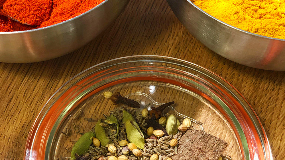 | Moudre tout ce qui précède et mélanger avec 100 g de poudre de curcuma et 50 g de poudre de chili du Cachemire.