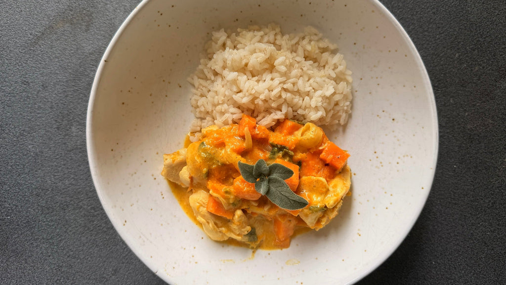 POULET AU BUTTERNUT, CURRY ET SAUGE FRAICHE