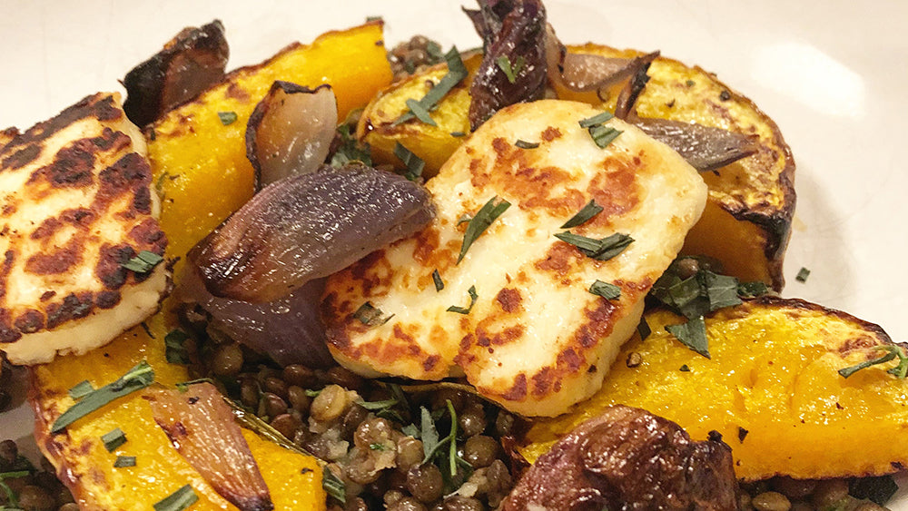 SALADE DE COURGE BUTTERNUT, LENTILLES ET HALLOUMI